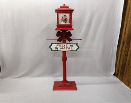Poste Natalino vermelho c/ papai noel e boneco de neve